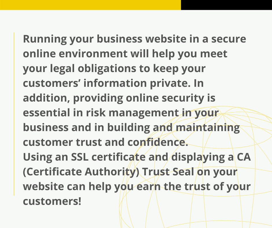 By taking online security seriously and implementing the appropriate security measures, you can protect your customers’ information. This helps safeguard your business, and build trust with your customers.